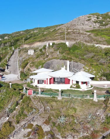 With it's original round shaped architecture, the main house (Casa dos Cogumelos) combines the details of a luxurious hotel with the privacy of your own home. It can host up to 6 people, featuring 3 bedrooms, 2 bathrooms, a fully equipped kitchen, a dining room, a living room and a varanda facing the ocean. On the outside you can enjoy the garden, a fully equipped barbecue and a pleasant dining area.
