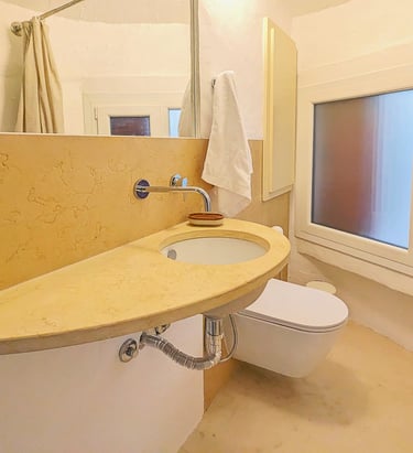 Both bathrooms have additional small windows connecting with the exterior to provide natural light while maintaining the intimate atmosphere of your personal retreat.